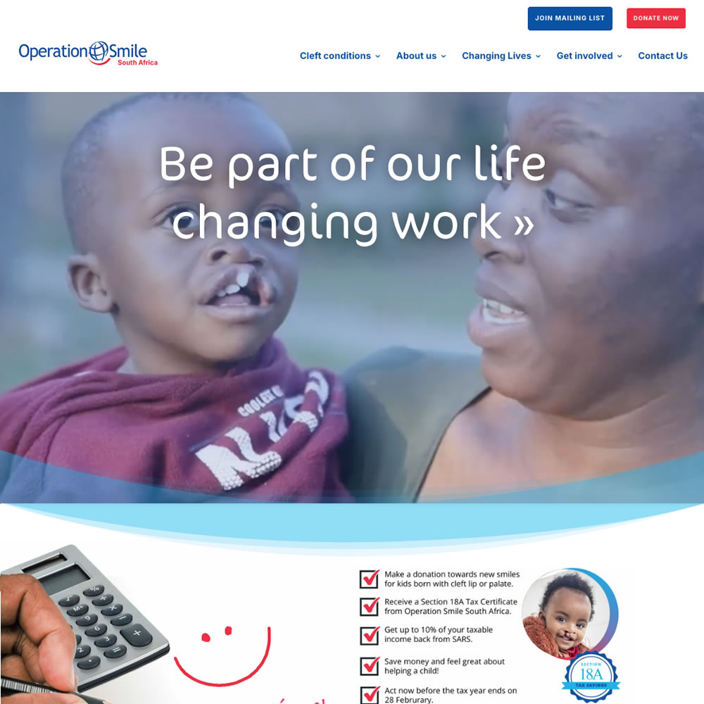 Operation Smile South Africa needed to align their site with international brand guidelines, yet retain its appeal and focus on funding needs, highlighting the difference donors can make. We introduced new brand colours and styles, while retaining the site's individuality.